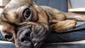 The squished face of the Frenchie means there is less space for their anatomy to fit and they’re less able to filter allergens within the air. They are more prone to respiratory inflammation and infections, and can struggle to deal with environmental allergies.